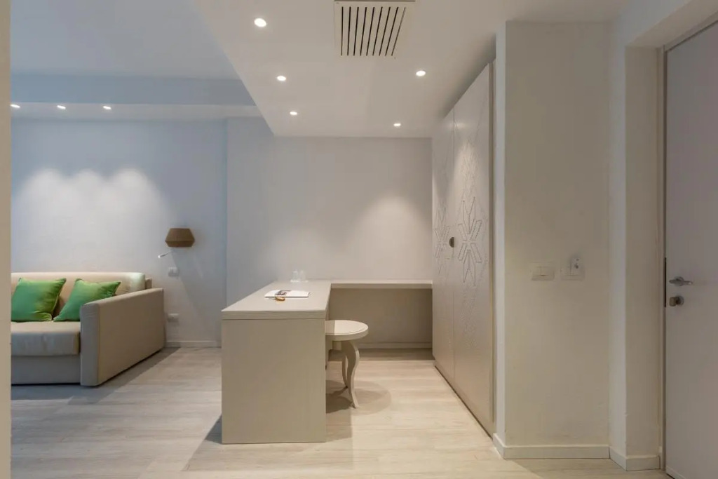 Свет и тень в отеле Flamingo Pula - Сардиния: деньги потрачены не зря. Отель окружен зеленью и выходит окнами на пляж. Зелень очень ухоженная Главное здание с просторными комнатами и хорошо меблировано. Мы забронировали заранее номер на верхнем этаже с полным пансионом. Недавно отремонтированный люкс с просторным пространством и террасой, со столом, стульями, шезлонгами и очень удобной кроватью с видом на чудесный и ухоженный парк с эвкалиптовыми деревьями. Абсолютная ночная тишина для лучшего отдыха. Жалко, как обставлен этот гарнитур: шкаф для двоих маловат, сейф поставить в непрактичном положении. В ванной душ узкий, без мыльницы и с раздвижными дверцами, которые открываются и закрываются с большим трудом. Крючки для подвешивания халатов крайне непрактичны. Раковина большая, но без полочек, куда ставить предметы Увеличительное зеркало и фен находятся слишком далеко от раковины. Войлочные подкладки под стулья отсутствуют. USB-разъемы отсутствуют На тумбе под телевизором отсутствует ручка: возможно ли это? Есть гидромассаж, но чтобы получить к нему доступ, нужно заниматься акробатикой: пользоваться им невозможно. В спальне два окна, но только одно затемнено на ночь: загадка. В холле номера на земле лежит электрический кабель: это опасно и не имеет смысла. Банные полотенца отличного качества, косметика тоже. Я спрашиваю себя: чей это сумасшедший ум, который так ужасно обставил комнату? Кейтеринг очень низкого качества, что должно быть жемчужиной в 4-звездочном отеле. Обслуживание столов из-за позорной и преднамеренной нехватки персонала происходит слишком медленно и приводит к задержке обслуживания, и поэтому блюда на стол попадают холодными. Весь персонал добрый и внимательный, но в ресторане физически невозможно обслужить слишком много людей одновременно. За завтраком, за исключением одной из двух станций самообслуживания, они выстроили 12-минутные очереди, чтобы что-то достать: это недопустимо. Я не понимаю, почему местная сырая ветчина и сыр пекорино не подаются по утрам, два сардинских фирменных блюда, которые могут попробовать иностранные гости, как истинное итальянское совершенство. Стулья в столовой очень неудобны из-за неправильного наклона. По этим уважительным причинам отель не заслуживает 4 звезд. Чтобы определить структуру, отсутствует ресторан с обслуживанием по меню. Я рекомендую только be & be. Есть очень широкий бассейн. Пляж - наиболее хорошо организованный аспект: чистый песок и хорошие зонтики и шезлонги за отдельную плату; Море очень чистое с прозрачной водой, но для гальки нужно надевать специальную резиновую обувь, когда вы входите в море: опасность поскользнуться очень высока. На Сардинии вы найдете лучшие места и пляжи. Я не могу рекомендовать этот отель.