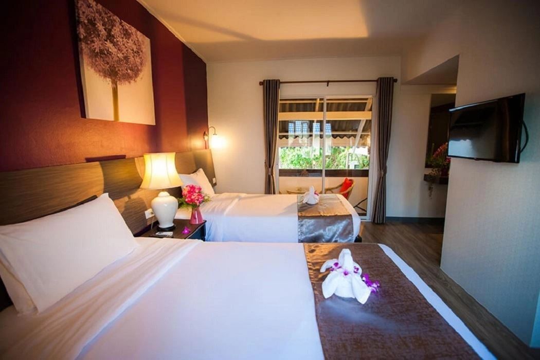 Очень понравился отель. Чисто, приятный персонал, все работает : кондиционер, горячая вода, чистый бассейн, вкусные завтраки ( овощи, фрукты, яйца - яичница и омлет, сосиски, рис, лапша, курица и сосиски, и для веганов много еды, сыра нет, из сладостей - только джем), месторасположение рядом с морем, не шумно, рядом рыки, рестораны, магазины, сувенирные лавки). Фрукты можно купить с машины, которые ездят по дороге во второй половине дня. Можно съездить на рынок, но далековато. На территории отеля есть массажный салон, не далеко от отеля тоже несколько массажных салонов, цены на массаж примерно одни и те же. Можно попробовать у разных массажистов. Возле бассейна есть шезлонги и зонтики. Пляж чистый, убираются каждый день. Море мутноватое, на островах, конечно же чистейшая вода. До центра километров 6, можно доехать на тук-туке, который ездит часто. Территория вся в зелени. Номер с верандой. Веранда на 4 номера. Повезло с соседями. Верандой пользовались только мы. Белье меняли каждый день. Мы ездили вдвоем, Для детей в отеле нет развлечений. Есть детская площадка на берегу, но далеко от отеля. Оплачивали улучшенный номер, но поселили в обычный. Прочитав отзывы об отеле, я поняла, что это практика у них частенько. Выбирая отель для отдыха, имейте это в виду. Можно, при желании, решить вопрос о смене номера без доплат. Мы ехали активно отдыхать и целыми днями пропадали на экскурсиях. В отель приходили только спать.